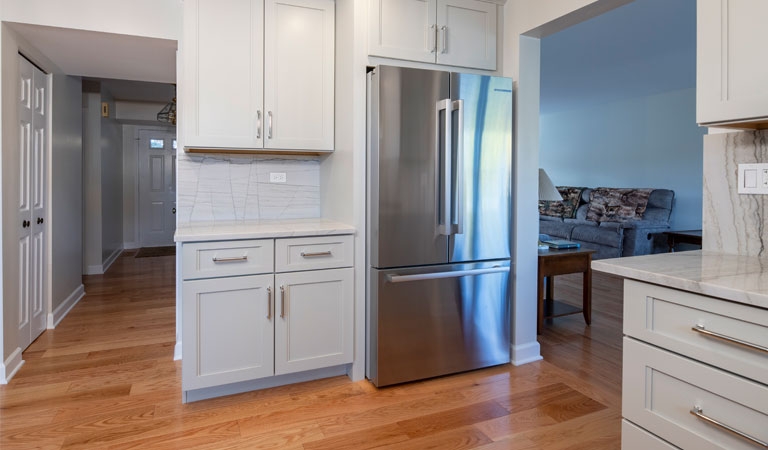 This calm transitional kitchen helped bring the homeowner's ideas to life elegantly! This kitchen concept made it possible for homeowners to have a more organized and functional space to enjoy.