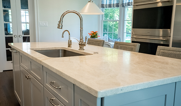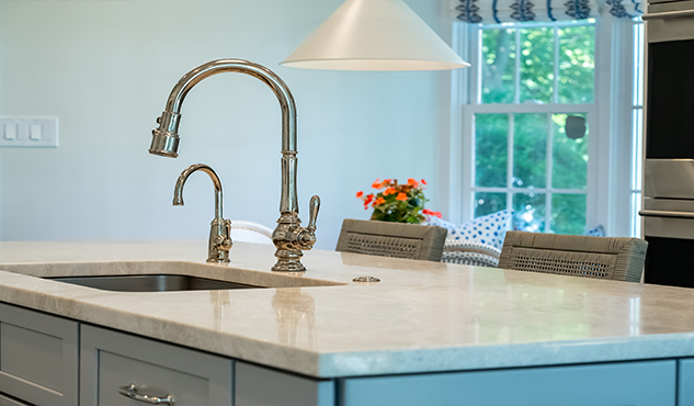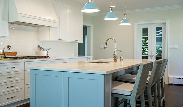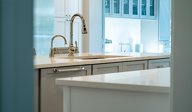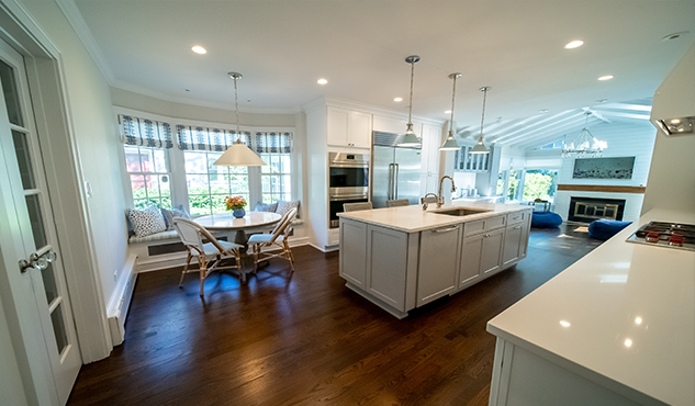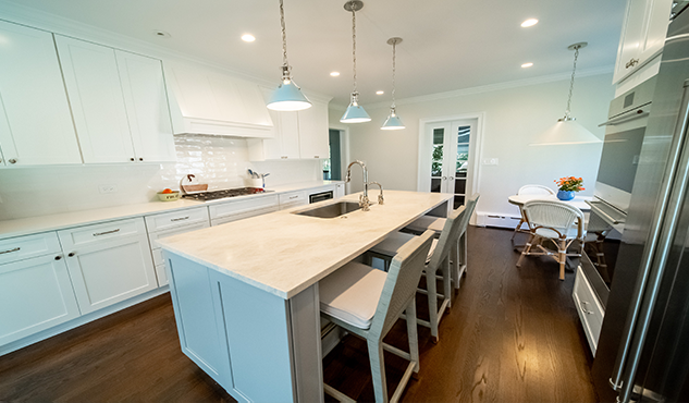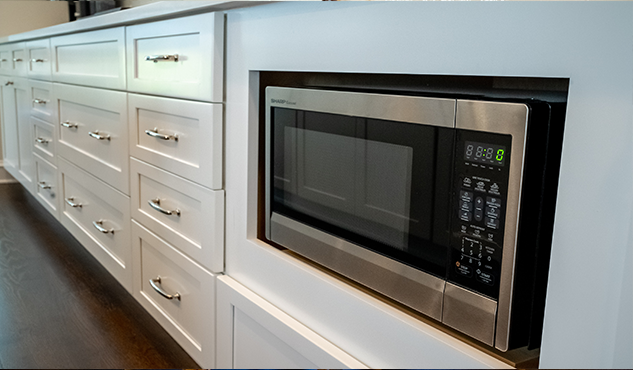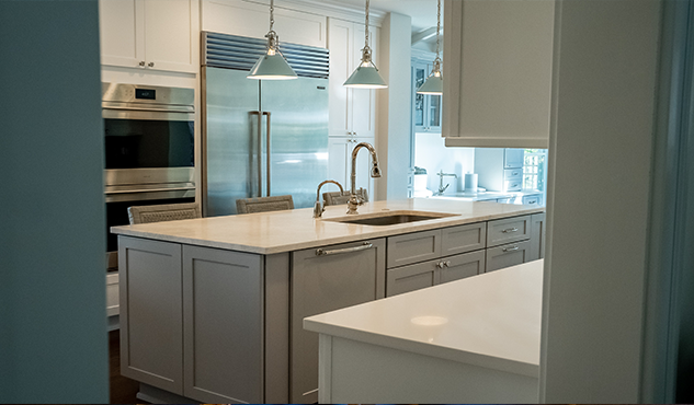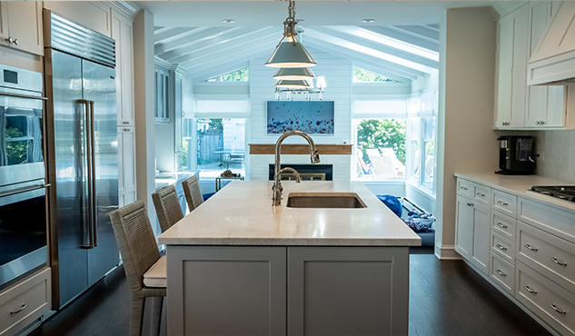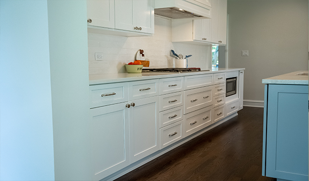 An amazing kitchen design that emphasize the efficiency ,workability and cleanliness. There is no wasted spaces and no unnecessary display of items or clutter. All the appliances are build-in and the work areas are easy to maintain and clean. This affordable kitchen cabinetry made by Fabuwood Cabinetry with Frost finish on the perimeter and Nickle finish on the island creates the space that anyone can enjoy it with the family and friends